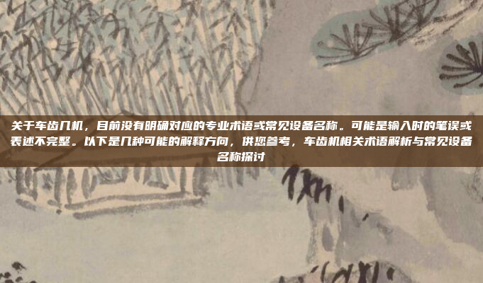![关于车齿几机,目前没有明确对应的专业术语或常见设备名称。可能是输入时的笔误或表述不完整。以下是几种可能的解释方向,供您参考,车齿机相关术语解析与常见设备名称探讨]()