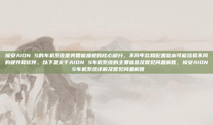 ![埃安AION S的车机系统是其智能座舱的核心部分,不同年款和配置版本可能搭载不同的硬件和软件。以下是关于AION S车机系统的主要信息及常见问题解答,埃安AION S车机系统详解及常见问题解答]()