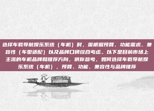 ![选择车载导航娱乐系统(车机)时,需根据预算、功能需求、兼容性(车型适配)以及品牌口碑综合考虑。以下是目前市场上主流的车机品牌和推荐方向,供你参考,如何选择车载导航娱乐系统(车机),预算、功能、兼容性与品牌推荐]()