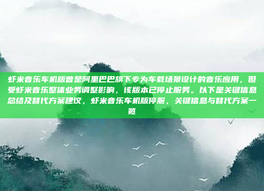 ![虾米音乐车机版曾是阿里巴巴旗下专为车载场景设计的音乐应用,但受虾米音乐整体业务调整影响,该版本已停止服务。以下是关键信息总结及替代方案建议,虾米音乐车机版停服,关键信息与替代方案一览]()