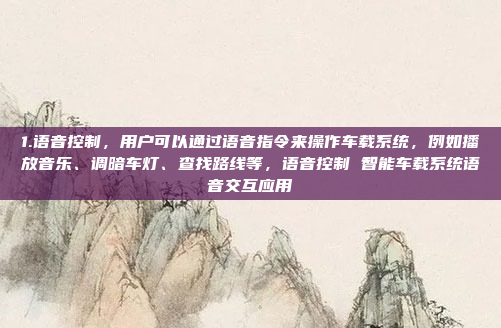 语音控制技术正在逐步融入现代汽车的车载系统中,通过用户发出的语音指令,车辆可以执行多项功能操作,用户可以轻松地播放音乐、调暗车灯、查找并导航到目的地等,这种智能化的交互方式不仅提升了驾驶体验,还为驾驶员和乘客提供了更加便捷的服务,随着汽车电子技术的不断发展,语音控制将成为车载系统的重要组成部分,进一步推动智能化驾驶辅助系统的普及。