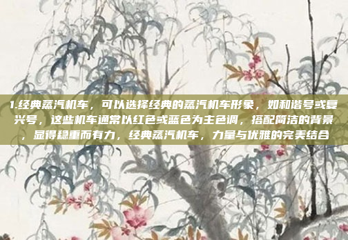 经典蒸汽机车设计可以选择经典的和谐号或复兴号形象,这些机车以红色或蓝色为主色调,搭配简洁的背景,展现出稳重而有力的视觉效果,和谐号和复兴号作为中国铁路的标志性车型,不仅代表了现代科技的力量,也传承了经典的工业美学,通过简洁大气的设计,这些机车形象能够传递出速度与力量的结合,同时彰显出中国铁路的现代化与创新精神,整体设计注重色彩与线条的和谐统一,既展现了机车的雄伟气势,又赋予了其时代感与科技感。