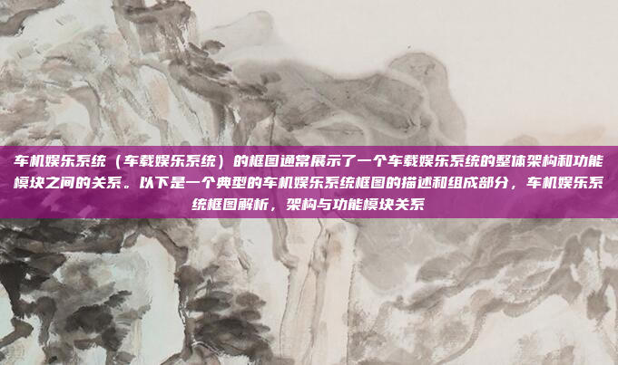 车机娱乐系统的框图展示了系统的各个功能模块及其交互关系,包括输入、处理、输出、存储和网络连接等部分,通过框图可以清晰地了解系统的架构和工作流程,帮助设计者和开发者更好地理解系统的组成和运行机制,该系统不仅具备完善的娱乐功能,还通过先进的技术实现智能化和高效能,为用户带来安全、便捷和愉悦的驾驶体验。