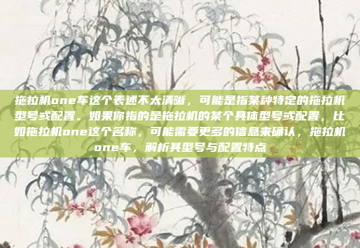 “拖拉机one车”这个表述不够清晰,可能指的是某种特定的拖拉机型号或配置,如果你指的是拖拉机的某个具体型号或配置,拖拉机one”这个名称,可能需要更多的信息来确认其具体含义,建议提供更多细节,例如型号、功能或用途,以便更准确地理解和确认相关内容,明确信息有助于更好地讨论或解决问题。