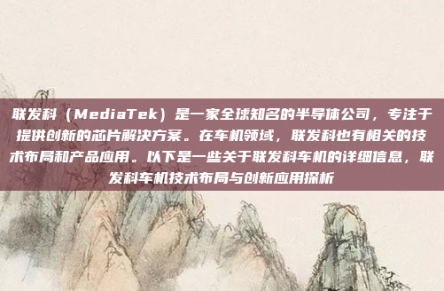 联发科(MediaTek)是一家全球知名的半导体公司,专注于提供创新的芯片解决方案,在车机领域,联发科积极布局,致力于为智能驾驶和车载娱乐系统提供高性能、低功耗的芯片技术,其车机产品涵盖车载信息娱乐系统、数字仪表盘、车联网模块等多个领域,凭借先进的技术优势,为汽车制造商和一级供应商提供可靠的支持,联发科的车机解决方案不仅提升了车内电子设备的性能和用户体验,还推动了智能驾驶技术的普及与应用,通过持续的技术创新和市场拓展,联发科在车机领域不断巩固其行业地位,为全球汽车行业的发展注入了新的活力。