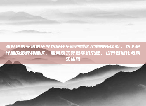 通过以上详细步骤,您可以成功改装轩逸的车机系统,提升驾驶体验和车辆功能,改装过程中请务必注意安全,确保所有操作符合规范,以保障您和车辆的安全。
