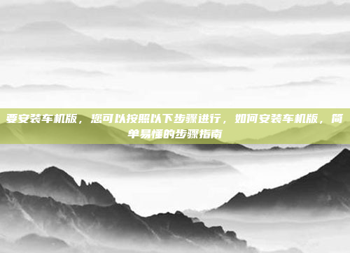 要安装车机版,请按照以下步骤操作:确保车辆处于熄火状态,并断开电源以确保安全,准备所需的工具和设备,包括适配器、数据线等,将车机版设备连接到车辆的OBD接口或其他指定接口,确保连接稳固,随后,根据屏幕提示完成系统安装,包括选择语言、设置网络等,安装完成后,进入系统主界面,按照提示完成功能设置,如导航、娱乐、驾驶模式等,测试各项功能,确保运行正常,整个过程简单易行,完成后您将拥有更智能、便捷的车载体验。
