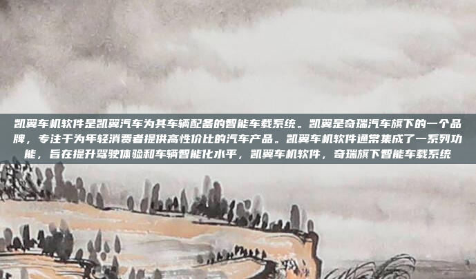 凯翼车机软件是奇瑞汽车旗下品牌凯翼为其车辆开发的智能车载系统,旨在为年轻消费者提供高性价比的汽车产品和智能化驾驶体验,该软件集成多种功能,显著提升了车辆的智能化水平和驾驶体验,满足了用户对科技与便利性的需求。