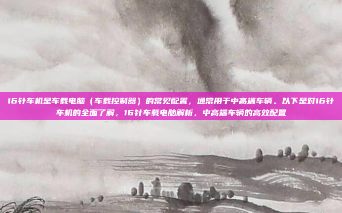 16针车机在车载系统中扮演重要角色,通过丰富的引脚和功能,支持车辆的高效控制和管理,深入了解其结构、配置、工作原理和应用案例,有助于更好地应用和维护车载电脑,16针车机的复杂性要求更高的技术支持和维护能力,确保系统的稳定性和可靠性。
