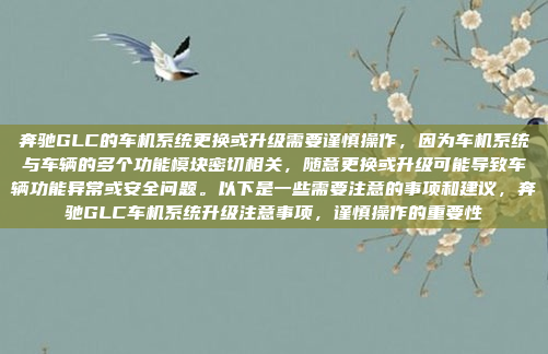 更换奔驰GLC的车机系统需要谨慎操作,最好在专业人员的指导下进行,以确保车辆的正常运行和安全。