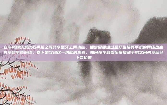 在车载娱乐系统和手机之间共享蓝牙上网功能,通常需要通过蓝牙连接将手机的网络热点共享到车载系统,以下是实现这一功能的步骤:确保手机已开启蓝牙功能,并连接到车载娱乐系统的蓝牙网络;打开手机的热点功能,选择要共享的网络;在车载娱乐系统中找到蓝牙设置,选择手机设备并完成配对;确认网络连接成功,车载系统即可通过蓝牙使用手机的网络功能,需要注意的是,部分车载系统可能需要额外的设置或支持,建议参考车辆的用户手册或咨询专业人员以确保操作顺利进行。