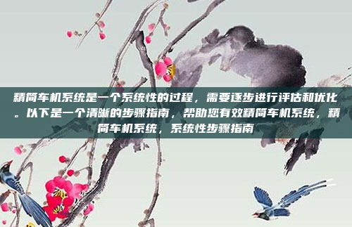 精简车机系统是一个系统性的过程,需要逐步进行评估和优化,需全面评估当前车机系统的功能、性能和资源使用情况,识别冗余或低效的部分,分析系统功能需求,明确哪些功能可简化或移除,同时确保核心功能不受影响,优化系统配置,减少不必要的软件模块和硬件资源,提升运行效率,随后,进行测试和验证,确保精简后的系统稳定可靠,满足使用需求,持续监控和改进系统,根据反馈进一步优化,通过以上步骤,可以有效精简车机系统,提升性能和稳定性,同时降低资源消耗。