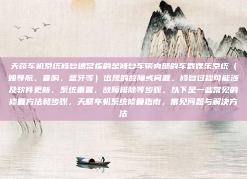 天籁车机系统修复是指针对车辆车载娱乐系统(如导航、音响、蓝牙等功能)出现的故障或问题进行修复的过程,修复通常涉及软件更新、系统重置、故障排除等步骤,常见的修复方法包括检查系统是否有可用的软件更新,通过官方渠道下载并安装最新版本的系统软件;如果系统出现卡顿或死机,可以尝试进行系统重置,恢复出厂设置;对于特定的故障,如蓝牙连接异常或导航定位错误,可以通过故障排除工具或手册查找问题原因并解决,在修复过程中,建议车主按照官方指南操作,确保操作安全,避免因误操作导致系统进一步损坏,如果自行修复困难,建议联系专业技术人员或4S店进行诊断和修复。