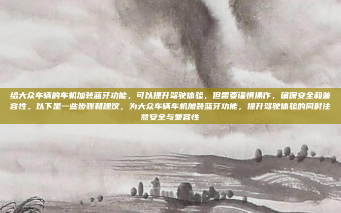 为大众车辆的车机加装蓝牙功能可以显著提升驾驶体验,但操作需谨慎以确保安全和兼容性,选择与车辆型号匹配的蓝牙设备,并确保其与原车系统兼容,操作前,断开车辆电源以避免触电或损坏设备,安装时,建议由专业人员进行,以确保线路连接正确且不影响车辆性能,安装后,测试蓝牙连接功能,确保音频和控制功能正常,定期检查设备兼容性,避免干扰或系统故障,通过以上步骤和建议,车主可以安全有效地提升驾驶体验。