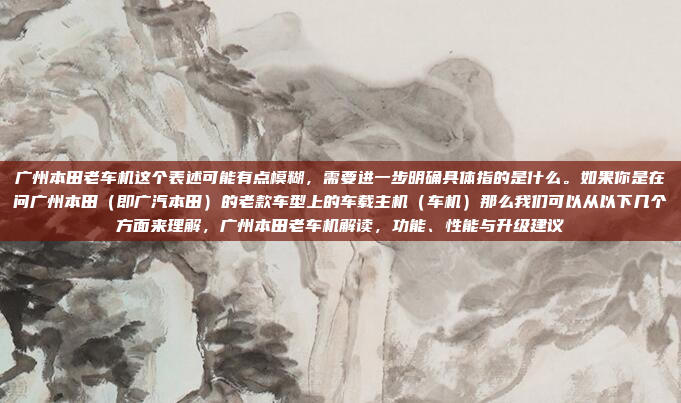 广汽本田老款车型的车载主机(车机)通常指的是车辆内部的多媒体系统或信息娱乐系统,这类系统主要负责提供导航、音响播放、蓝牙连接、空调控制等功能,是车辆智能化的重要组成部分,随着技术的发展,广汽本田的车机系统在功能和性能上不断提升,但早期车型的车机可能在硬件配置和软件功能上相对有限,部分老款车型的车机可能不支持最新的智能语音交互或无线连接功能,且硬件老化可能导致运行速度变慢或出现故障,对于车主来说,如果对车机功能有更高需求,可以通过升级车机系统或加装第三方设备来提升使用体验,需要注意的是,任何改装或升级操作都应遵循相关规定,并确保不影响车辆的安全性能。