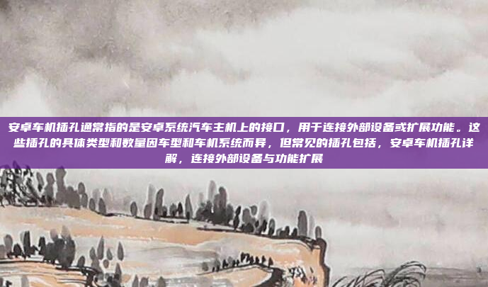 安卓车机插孔是指安装在安卓系统汽车主机上的接口,用于连接外部设备或扩展功能,这些插孔的类型和数量因车型和车机系统而异,但常见的插孔包括USB、HDMI、AUX、以太网、SD卡和蓝牙/WiFi接口等,USB接口主要用于连接手机、U盘等设备,支持数据传输和充电;HDMI接口用于连接外部显示设备,如手机或游戏机,实现视频输出;AUX接口用于连接音频设备,如蓝牙耳机或音乐播放器,以太网接口则用于有线网络连接,SD卡插槽可扩展存储空间,方便存储音乐、视频等文件,这些插孔为车主提供了丰富的功能扩展和设备连接选择,提升了车载娱乐和功能体验,不同车型和车机系统可能会有不同的插孔配置,具体功能需根据车辆规格和用户手册确认。