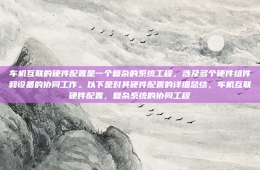 车机互联的硬件配置是一个复杂的系统工程,涉及多个硬件组件和设备的协同工作,该系统需要高性能的处理器、传感器、通信模块以及数据传输接口等关键硬件组件,以实现车辆与智能设备之间的无缝连接和数据交互,在设计过程中,硬件配置需要充分考虑系统的性能需求、兼容性以及可靠性,以确保车机互联功能的稳定性和高效性,硬件配置还需与软件系统高度配合,共同优化用户体验,提升车辆智能化水平和驾驶体验。