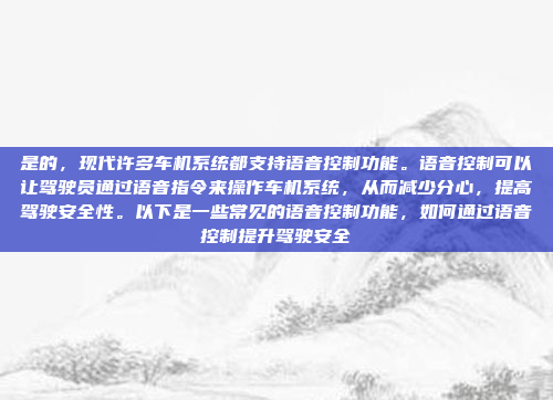 现代车机系统广泛支持语音控制功能,驾驶员可通过语音指令操作车机系统,从而减少分心,提升驾驶安全性,语音控制不仅简化了操作流程,还使驾驶员能够专注于道路,降低事故发生的风险,常见的语音控制功能包括拨打电话、调整音乐、设置导航、发送信息以及管理提醒事项等,这些功能通过自然语言处理技术实现,使用户能够更便捷地与车辆交互,总体而言,语音控制技术显著提升了驾驶体验和安全性,成为现代汽车智能化的重要组成部分。