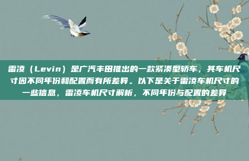 雷凌(Levin)是广汽丰田推出的一款紧凑型轿车,其车机尺寸因不同年份和配置而有所差异,雷凌的车机屏幕尺寸通常在7英寸到12.1英寸之间,具体取决于车辆的年份和配置版本,部分早期车型可能配备7英寸或8英寸的中控屏幕,而更高配置的车型则可能搭载10.1英寸或12.1英寸的屏幕,车机系统还支持多种功能,如导航、娱乐、语音控制等,进一步提升了驾驶体验,总体而言,雷凌的车机尺寸和功能配置与其车型定位和目标用户需求相匹配,为消费者提供了多样化的选择。