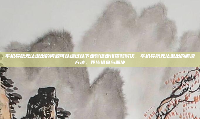 车机导航无法退出的问题可以通过以下步骤逐步排查和解决:检查导航设置,确认是否启用了自动退出功能,若未开启则需手动调整,尝试重启车机设备,通过断电或使用系统重启功能来恢复导航正常退出,若问题仍未解决,检查导航系统是否有可用的软件更新,及时更新至最新版本以修复可能存在的bug,可以尝试恢复出厂设置,但需注意备份重要数据,如果以上方法无效,建议联系专业技术人员或4S店进行进一步诊断和修复,通过以上步骤,用户可以系统地排查并解决车机导航无法退出的问题。