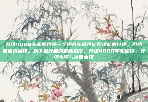 升级4008车机固件是提升车辆性能和功能的重要操作,但需谨慎进行,在升级前,建议备份重要数据,确保车辆处于稳定状态,升级过程中,需按照官方指南或专业工具的提示操作,避免中途打断或网络不稳定导致升级失败,升级完成后,建议进行系统测试,确保功能正常,整个过程需耐心和细致,以确保车辆性能和安全性不受影响。