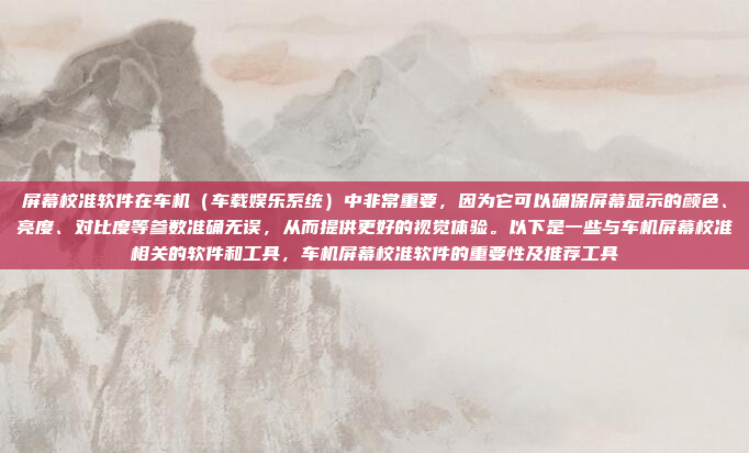 屏幕校准软件在车机(车载娱乐系统)中扮演着重要角色,它能够确保屏幕显示的颜色、亮度、对比度等参数准确无误,从而为用户提供更优质的视觉体验,通过精确校准,车机屏幕能够呈现出更真实的色彩和更清晰的图像,提升整体使用感受,屏幕校准软件还能优化不同环境光线下的显示效果,确保屏幕在各种条件下都能保持最佳状态,在实际应用中,许多专业的校准工具和软件被用于车机屏幕的校准工作,这些工具通常结合了先进的算法和技术,能够快速、精准地完成校准过程,通过这些软件和工具,车机屏幕的显示效果得到了显著提升,为用户带来更舒适的驾乘体验。