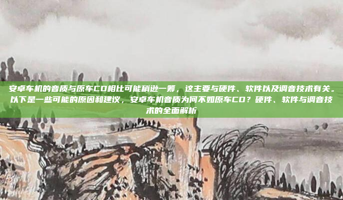 - 如果你对音质有较高要求,可以考虑升级现有的音响系统,或者选择一款在音质表现上更为突出的车机产品,也可以通过搭配外接音响设备或优化设置等方式,进一步提升安卓车机的音质体验。
