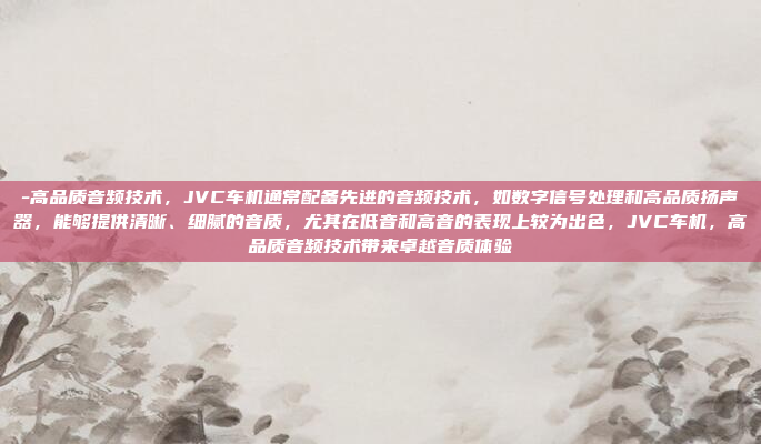 JVC车机以其高品质音频技术著称,通常配备先进的数字信号处理技术以及高品质扬声器,能够提供清晰、细腻的音质表现,其在低音和高音方面的表现尤为出色,为用户带来沉浸式的听觉体验,JVC车机通过优化音频处理和声学设计,确保声音还原度高,细节丰富,满足了对音响效果有较高要求的用户需求,无论是音乐爱好者还是日常驾驶,JVC车机都能提供卓越的音频性能,成为汽车音响领域的佼佼者。