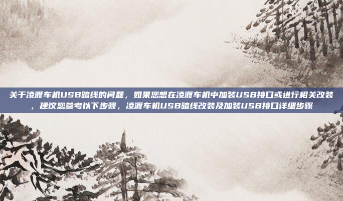 关于凌渡车机USB暗线的问题,如果您想在凌渡车机中加装USB接口或进行相关改装,建议您参考以下步骤:确保车辆处于断电状态,以确保安全操作,拆卸中控台饰条,露出车机内部结构,找到原车USB接口的预留位置或空闲接口,确保其功能正常,在布线时,尽量将线路隐藏在中控台内部,避免影响美观和安全性,完成布线后,固定好线路,防止松动,测试USB接口功能是否正常,并恢复中控台饰条,确保整体整洁,改装过程中请注意安全,建议根据个人技术能力进行操作。