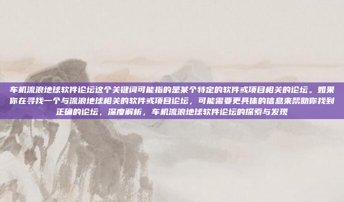 “车机流浪地球软件论坛”这一关键词可能指的是一个与“流浪地球”相关的软件或项目相关的论坛,但具体信息尚不明确,如果你在寻找一个与“流浪地球”相关的软件或项目论坛,可能需要提供更具体的信息,以便更准确地找到相关的论坛或资源,建议提供更多细节,例如论坛的名称、主题或功能,以便进一步帮助你找到所需的资源或社区。