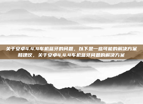 关于安卓4.4.4车机蓝牙的问题,以下是一些可能的解决方案和建议:尝试重启车机系统和蓝牙设备,以排除临时故障,检查蓝牙设置,确保蓝牙功能已启用,并尝试重新配对设备,如果问题依旧,可以尝试更新车机系统至最新版本,以修复可能存在的软件问题,检查车机与蓝牙设备的兼容性,确保两者支持相同的蓝牙协议,如果以上方法无效,可以尝试恢复车机出厂设置,但需注意备份重要数据,如果问题仍未解决,建议联系车辆制造商或专业技术人员进行进一步诊断和修复。