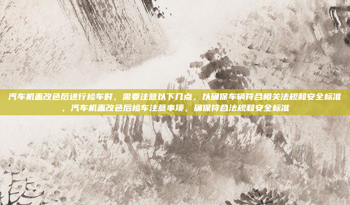 汽车机盖改色后进行检车时,需注意以下几点以确保车辆符合法规和安全标准:改色需选择符合规定的颜色和材料,避免使用过于鲜艳或不符合交通管理部门要求的色调;施工工艺要规范,确保改色表面光滑、无明显瑕疵,避免影响车辆识别和安全性能;改色后需检查车漆的附着力和耐久性,确保长时间使用不会出现脱落或褪色问题;改色区域需保留车辆原有的反光标识或增加符合规定的反光材料,以保障夜间行车安全;建议车主在改色前咨询专业人员,了解当地相关法规要求,并在改色后及时进行车辆年检,确保通过相关部门的查验。