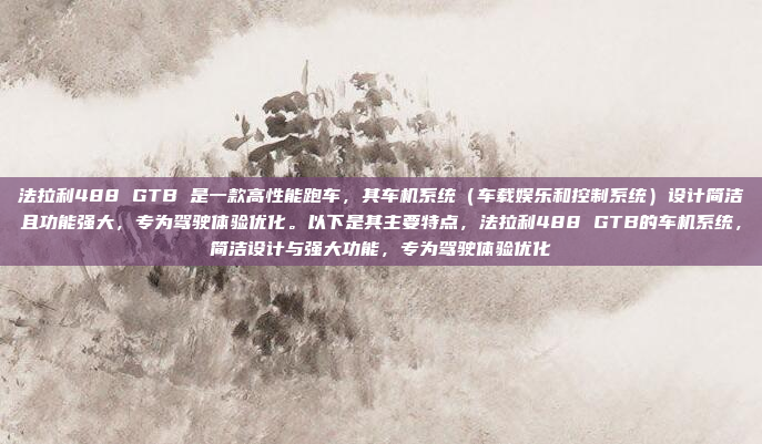 法拉利488 GTB的车机系统设计简洁且功能强大,旨在为驾驶者提供卓越的驾驶体验,其配备12.3英寸全液晶仪表盘,界面设计直观,菜单布局简洁,便于驾驶员快速操作,系统支持触控和语音控制功能,进一步提升了操作便利性,车机系统还针对赛道驾驶进行了优化,提供丰富的驾驶模式和性能数据,帮助驾驶者更好地掌控车辆,该系统兼容Apple CarPlay和Android Auto,确保了日常使用的便利性,法拉利488 GTB的车机系统不仅在性能上表现出色,还兼顾了安全性和用户体验,为驾驶者带来极致的驾驶乐趣。