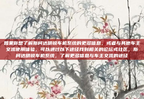 如果你想了解斯柯达明锐车机系统的更多信息,或者与其他车主交流使用体验,可以通过以下途径找到相关的论坛或社区,斯柯达车主论坛是一个不错的选择,许多车主会在这些平台上分享车辆的使用心得和车机系统的实际体验,像汽车之家、易车网、懂车帝等大型汽车垂直网站也设有专门的车主交流板块,你可以在这里找到大量关于斯柯达明锐的讨论和评价,知乎等知识分享平台也有许多车主的真实使用反馈,可以为你提供更全面的参考,如果你更喜欢即时互动,还可以关注一些斯柯达车主的微信公众号或加入相关的车友群,与其他车主实时交流,通过这些渠道,你可以更全面地了解斯柯达明锐车机系统的性能和使用体验,帮助你做出更明智的决策。