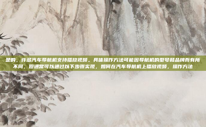 汽车导航机通常支持视频播放功能,但具体操作方法可能因设备的型号和品牌而有所不同,用户可以通过将视频文件存储在导航机的内置存储或外部存储设备(如USB)中,然后通过导航机的菜单选择视频播放选项来实现,部分导航机还支持通过蓝牙或Wi-Fi连接手机,播放手机上的视频内容,需要注意的是,不同品牌的导航机在界面设计和操作步骤上可能存在差异,建议参考设备的用户手册以获取更详细的指导,部分导航机可能需要通过特定的应用程序或功能选项来启动视频播放,总体而言,视频播放功能为驾驶过程中的娱乐提供了便利,但用户需根据设备的具体功能进行操作。