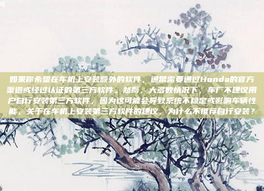 在车机上安装额外的软件通常需要通过Honda的官方渠道或经过认证的第三方软件进行,大多数车厂不建议用户自行安装第三方软件,因为这可能会导致系统不稳定或影响车辆性能,为了确保车辆的安全性和可靠性,建议用户通过官方或授权渠道进行软件安装和更新。
