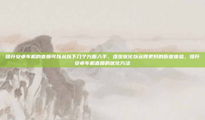 提升安卓车机的音质可以从硬件和软件两方面入手,升级音响硬件是关键,包括更换高品质喇叭、功放和低音炮,以增强音效表现,优化软件设置,如调整均衡器、声场模式和延迟补偿,能够进一步提升音质表现,改善车内声学环境,如减少噪音和优化空间声学,也能显著提升听音体验,使用高质量的音源和格式,如无损音乐,能够最大化音质潜力,通过逐步优化这些方面,可以显著提升安卓车机的音质表现,带来更优质的听音体验。