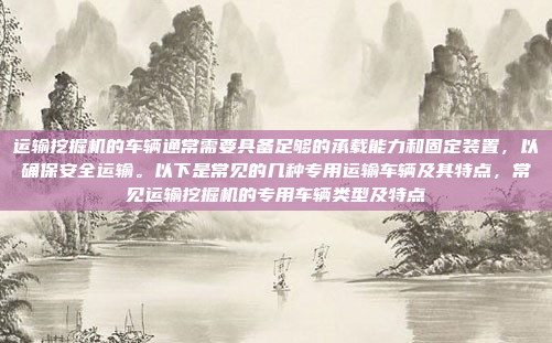 ** ,运输挖掘机需要专用车辆以确保安全高效,常见的运输工具包括: ,1. **平板拖车**:结构简单,承载能力强,适合中短途运输,需搭配固定装置防止设备滑动。 ,2. **低平板半挂车**:底盘低、稳定性高,便于装卸重型挖掘机,适合长途运输。 ,3. **自卸式运输车**:可倾斜卸货,适用于灵活装卸的场合,但需额外固定设备。 ,4. **伸缩式半挂车**:车长可调,适应不同尺寸的挖掘机,灵活性高。 ,这些车辆均需配备绑带、链条等固定装置,并遵守载重法规,以保障运输安全,选择合适的车型需考虑挖掘机型号、运输距离及路况等因素。