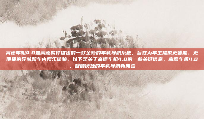 高德车机4.0通过智能化、个性化和娱乐化的功能升级,为用户提供了更优质、更安全的车载导航和娱乐体验,无论是日常通勤还是长途旅行,高德车机4.0都能成为您可靠的智能出行助手,如果您正在考虑升级您的车载导航系统,高德车机4.0无疑是一个值得考虑的选择。