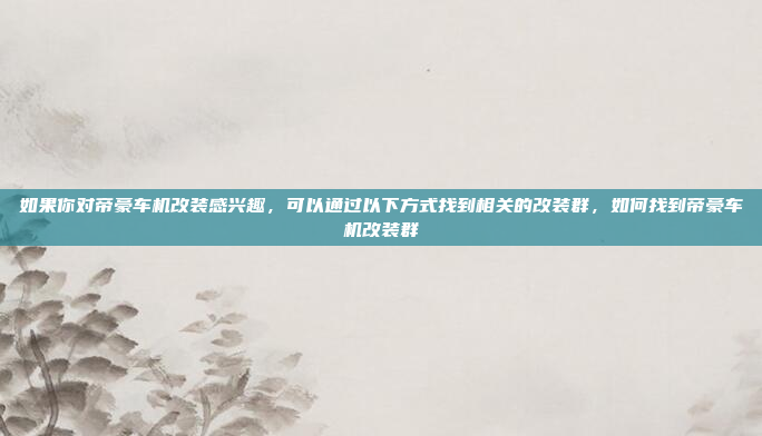 如果你对帝豪车机改装感兴趣,可以通过以下方式找到相关的改装群:可以在各大搜索引擎上搜索“帝豪车机改装群”,找到相关的QQ群、微信群或贴吧,可以关注一些汽车改装论坛或社区,如车友之家、改装之家等,这些平台通常会有专门的帝豪车机改装讨论区和群组,你还可以通过社交媒体平台,如微信、QQ等,搜索相关的改装群标签或关键词,加入感兴趣的群组,如果你身边有认识的车友,也可以直接询问他们是否有推荐的改装群,通过这些方式,你可以轻松找到志同道合的改装爱好者,交流经验并获取改装灵感。