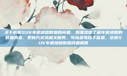 关于远景SUV车机地图数据的问题,以下是相关信息的总结:远景SUV的车机地图数据涵盖了丰富的地图信息,包括实时路况、兴趣点(POI)、语音搜索等功能,为驾驶者提供便捷的导航服务,地图数据支持多种更新方式,包括在线更新和离线地图下载,确保用户能够及时获取最新地图信息,车机地图数据的更新频率和内容由专业的地图服务提供商负责,确保数据的准确性和全面性,如需了解更多信息,可参考车辆的用户手册或联系售后服务。