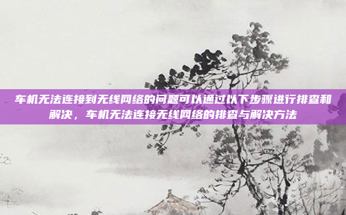 通过以上步骤,可以系统地排查和解决车机无法连接无线网络的问题,如果问题依然存在,建议寻求专业技术人员的帮助,以获得更深入的诊断和修复。