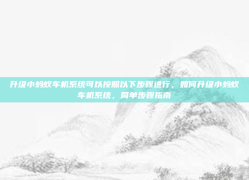 升级小蚂蚁车机系统可以按照以下步骤进行:确保车辆处于熄火状态,并断开电源,将ADB数据线连接到车机和电脑,确保ADB服务已启动,备份重要数据,进入刷机工具界面,选择固件版本并开始刷写,刷写过程中保持设备连接稳定,避免断电或中断,完成后,重启车机并测试系统功能是否正常,整个过程需谨慎操作,确保数据安全和系统稳定。