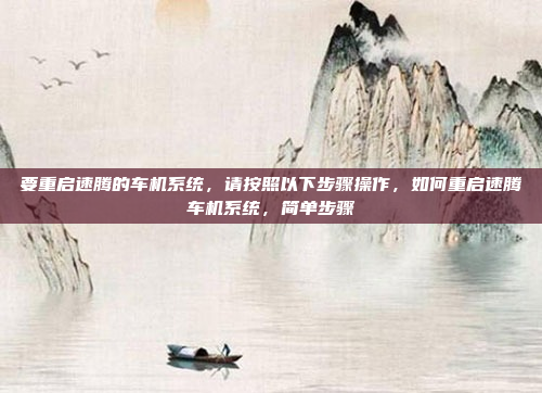 要重启速腾的车机系统,请按照以下步骤操作:确保车辆处于熄火状态,拔下位于驾驶舱内的OBD(车载诊断系统)连接器,通常位于方向盘下方或仪表盘附近,等待约30秒,以确保系统完全断电,重新连接OBD连接器,重新启动车辆,系统会自动重新启动,等待几秒钟,直到车机系统完全恢复,检查各项功能是否正常运行,通过这种方式,您可以轻松重启速腾的车机系统,解决卡顿或异常问题。
