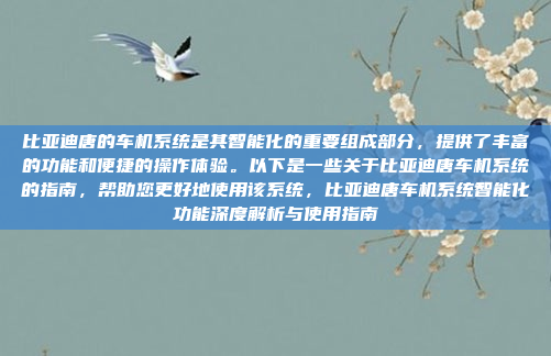 比亚迪唐的车机系统是其智能化的重要组成部分,为用户提供了丰富的功能和便捷的操作体验,该系统不仅支持多种智能交互方式,还集成了导航、娱乐、车辆控制等多种实用功能,极大提升了驾驶的便利性和趣味性,为了让用户更好地使用这一系统,以下提供了一些关于比亚迪唐车机系统的指南,帮助您充分挖掘其潜力,享受更智能、更贴心的驾乘体验。