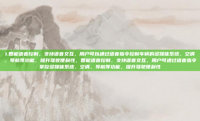 智能语音控制是一种先进的技术,通过语音交互为用户提供便捷的车辆操作体验,用户可以通过简单的语音指令控制车辆的多媒体系统、空调和导航等功能,从而提升驾驶的便利性和舒适性,这种技术不仅简化了操作流程,还减少了驾驶员在行车过程中分心的风险,进一步提高了驾驶安全性,智能语音控制的引入,标志着车载系统向更智能化、更人性化的方向发展,为用户带来更加高效和安全的驾驶体验。