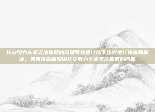 长安引力车机无法联网的问题可以通过以下步骤进行排查和解决:检查车辆的网络连接是否正常,确保车机和手机处于同一热点或网络环境中,尝试重启车机系统和手机网络,以排除临时性网络故障,如果问题仍未解决,检查车机系统是否需要更新,确保系统版本为最新版本,确认车机的网络设置是否正确,尤其是热点连接时的AP名称和密码是否与手机一致,如果以上方法均无效,建议联系长安汽车的客服或前往4S店进行专业检查和维修,通过这些步骤,可以有效排查并解决车机无法联网的问题。