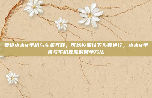 要将小米9手机与车机互联,首先需确认车机是否支持小米手机的互联功能,如小米的“手机投屏”或“米联”协议,打开手机的蓝牙或Wi-Fi功能,并在手机设置中找到“手机互联”或“投屏”选项,选择合适的连接方式(如蓝牙、Wi-Fi直连或USB),随后,在车载系统中进入相关设置界面,选择连接手机,按照提示完成配对,完成配对后,手机屏幕将投射到车机屏幕,实现互联功能,注意确保手机和车机系统均为最新版本,以获得最佳兼容性和体验。