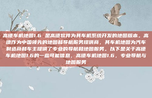 高德车机地图1.6是高德软件为车机系统开发的专业地图版本,旨在为汽车制造商和车主提供精准的导航和地图服务,作为中国领先的地图和导航服务提供商,高德车机地图1.6结合了专业的地图数据和先进的导航技术,优化了用户体验,支持实时路况更新、语音导航等功能,满足不同车型和驾驶场景的需求,该版本通过与汽车制造商的深度合作,提供定制化解决方案,进一步提升了车辆的智能化水平和用户出行效率,高德车机地图1.6凭借其可靠性和专业性,成为汽车导航领域的重要工具。