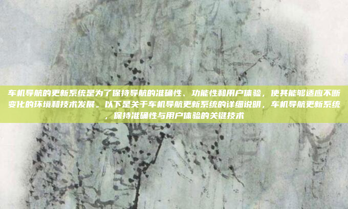 车机导航的更新系统对车辆的性能和用户体验具有重要影响,用户应定期检查系统更新,确保安全性和功能性,通过遵循正确的更新方法和注意事项,可以有效提升驾驶体验和安全性,同时为未来的智能化驾驶打下坚实基础。